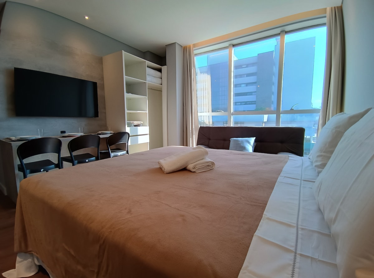 Apartamento Studio privado exclusivo para o hóspede Todo mobiliado e equipado Andar Alto Cama, mesa e banho completo. Sabonete e Shampoo. Cozinha Completa. Smart Tv 42" Canais Locais 02 elevadores Garagem Privativa Self Checkin - Próximo ao Bolshoi (10min. a pé). - Região Segura e Privilegiada -Máquina Lava/Seca (pago no prédio) -Taxa extra p/ troca de enxoval (cama/banho) durante a estadia. - Taxa extra acima de 2 hóspedes O uso ilícito do espaço pode ocasionar penalidades