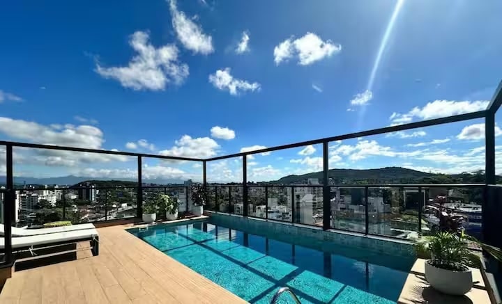 Descubra uma estadia incrível no Anita Garibaldi, este apartamento de 92m² oferece momentos únicos. Relaxe na banheira de hidromassagem da suíte master, aprecie o pôr do sol na churrasqueira com vista panorâmica e explore a cozinha gourmet equipada. Conforto na sala com sofá amplo e smart TV de 50". Descanse nos 3 quartos climatizados. Localização estratégica: 5 min do Shop. Estação e 3 min da BR-101. Segurança 24h, portaria digital, 2 vagas cobertas. Ideal para famílias, executivos ou casais.
