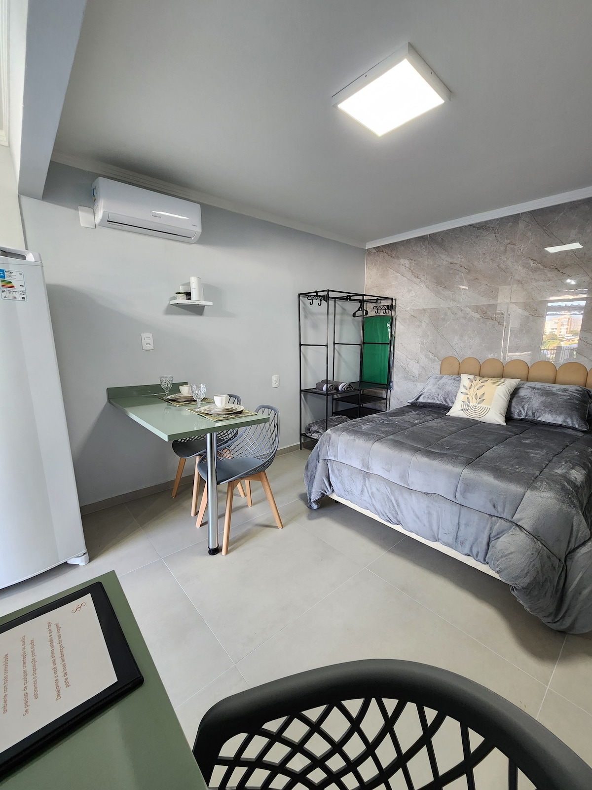 -Studio privado exclusivo; -Cama casal premium; -Roupa de cama/banho para duas pessoas; -Mobiliado e equipado; -Cama, mesa e banho completo; -Café capsula Nespresso; -Sabonete e Shampoo; -Produtos de limpeza; -Cozinha Completa; -Máquina Lava/Seca; -TV 50" com Disney+ e Netflix já com assinatura; -Academia; -Piscina no condomínio; -Espaço de trabalho. Localização - Próximo ao Bolshoi (5min de carro e 20min a pé); - Próximo a Supermercados, restaurantes e panificadoras (Máx 10min a pé).