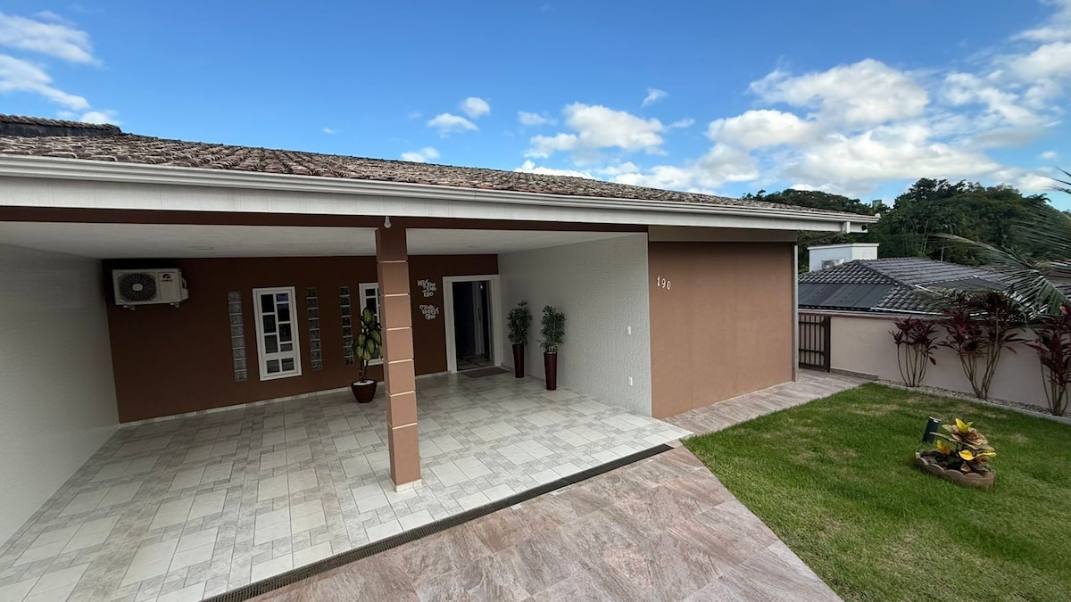 Esta acomodação elegante é perfeita para viagens em grupo, final de semana com a família, acomodação para trabalho e descanso, localizada numa excelente região de Joinville e conta com uma suíte com banheira, duas demi-suite, piscina aquecida, hidromassagem, escritório, e uma grande cozinha conjugada com ilha…. Além de um enorme sofá na sala. Casa toda climatizada com ar condicionado nos quartos, sala e cozinha!