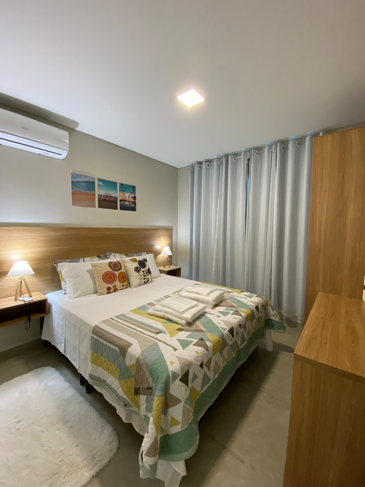 Apartamento confortável, bem planejado e com ótima estrutura para sua estadia. Está localizado em uma rua bastante movimentada, com tráfego de carros ao longo do dia e da noite. O espaço conta com porta de vidro, veneziana e cortina blackout para oferecer mais conforto. Ambiente organizado, com tudo o que você precisa para uma experiência prática e tranquila.