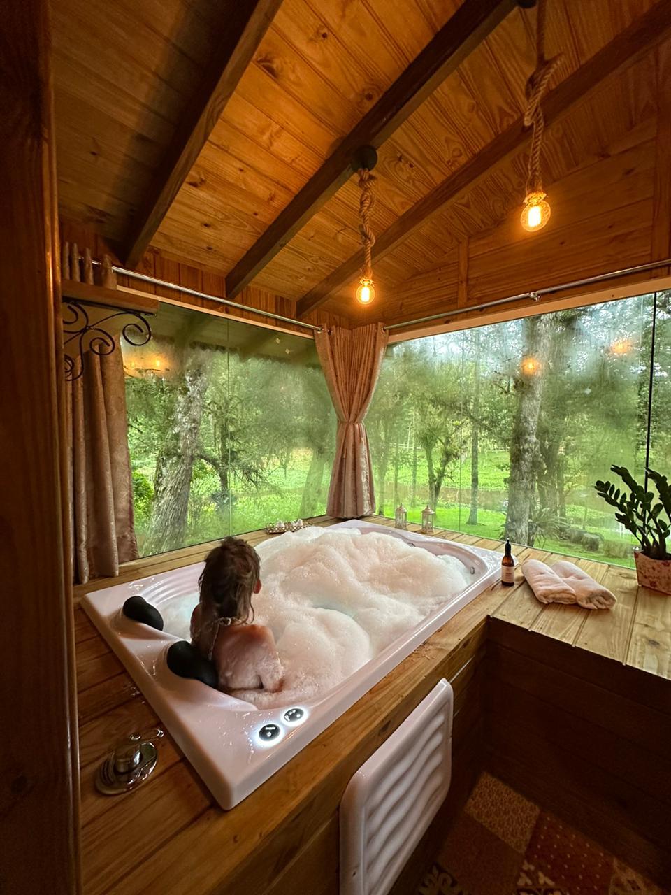 ✨ Cabana com Vista para o Lago ✨ Acomodações aconchegantes e cheias de charme, perfeitas para quem busca descanso e contato com a natureza. 🔥 Lareira interna, cozinha completa, quarto com cama box, sala e banheiro com chuveiro a gás. 💧 Hidromassagem com vista para a lagoa. 🌿 Deck com vista, área de lazer com fogueira e redes. 🛏️ Enxoval completo com roupas de cama e toalhas macias. ☕ Inclui passeio a 🐎cavalo e cesta de café da manhã