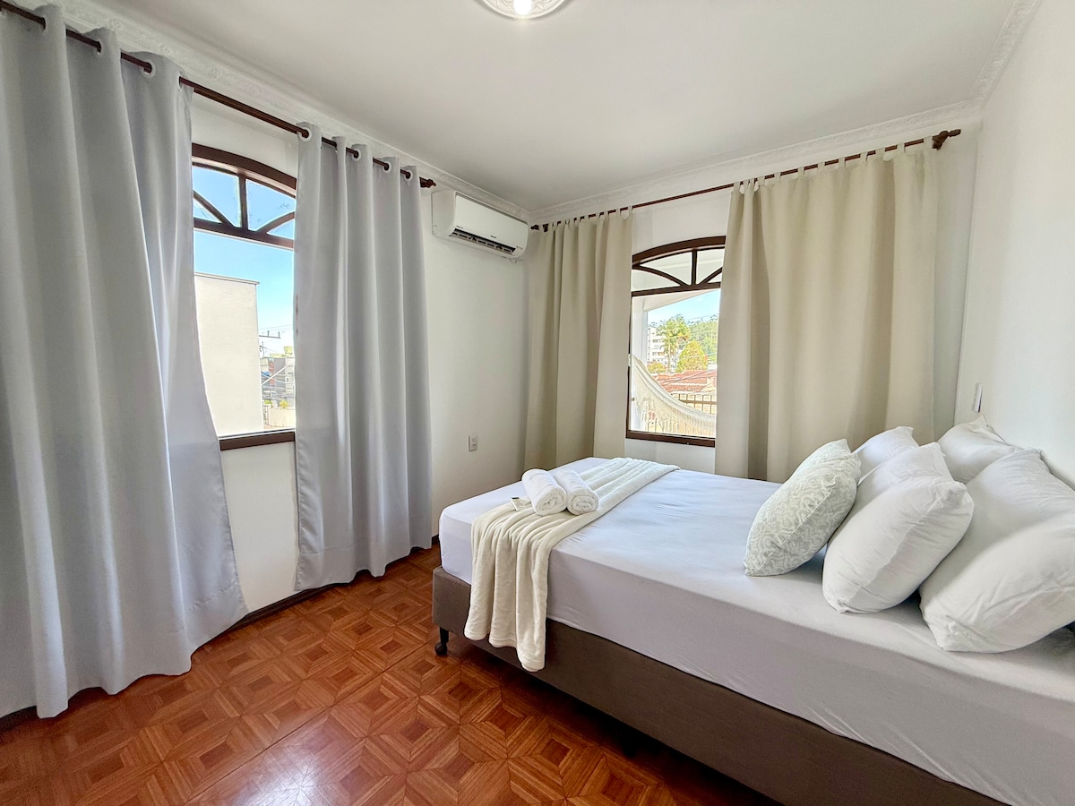 Café da manhã, Wifi, carregador de carro elétrico cortesia na hospedagem Taxa de turismo: R$ 3,00/diária ISS 3% incluso Diária por pet R$129,00 Estacionamento - R$ 30 por dia Quarto com decoração moderna equipado com: Ar condicionado quente e frio SmartTV led 32” Telefone Frigobar Caixa de som bluetooth JBL Cama box queen size Espelho de corpo inteiro Ampla janela com blackout duplo Enxoval de primeira linha Ducha com aquecimento central Ducha higiênica Secador Amenities biodegradáveis
