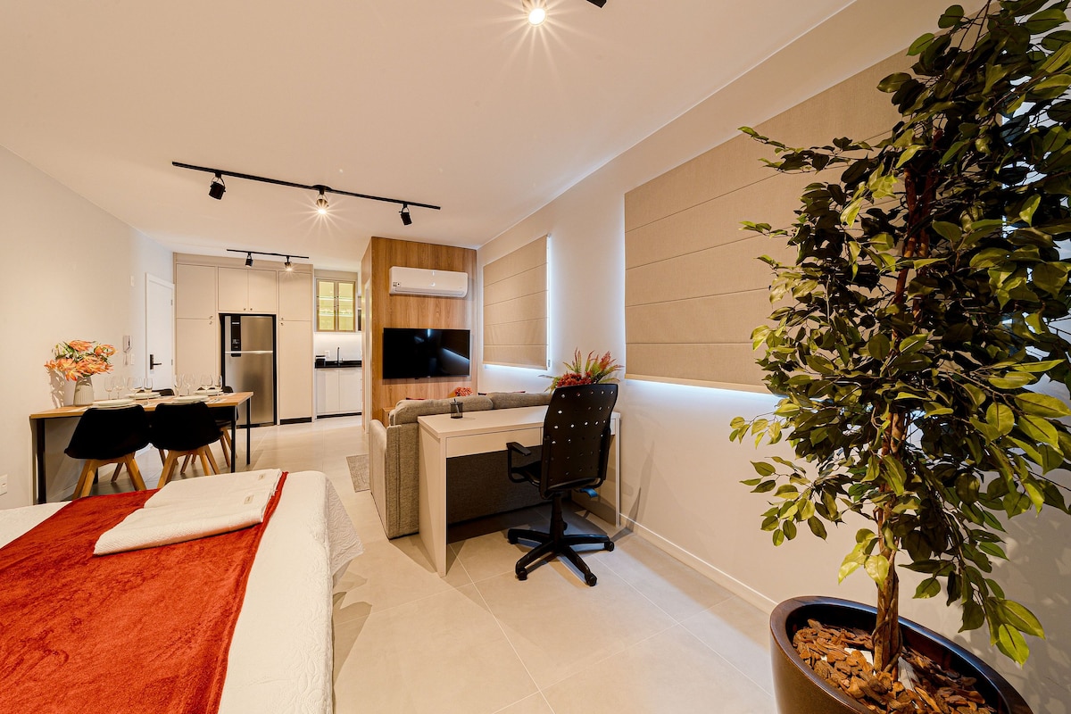Discover Unit 502 Mingus, perfect for up to 4 guests! It features a queen bed that can be split into two singles and a sofa bed in the living room, ensuring total comfort. Enjoy a full kitchen, laundry area, and modern bathroom. The building provides complete amenities: gym, pool, open bar with ice machine, and mini market. Every detail was designed for an unforgettable stay. Experience special moments in this welcoming space!