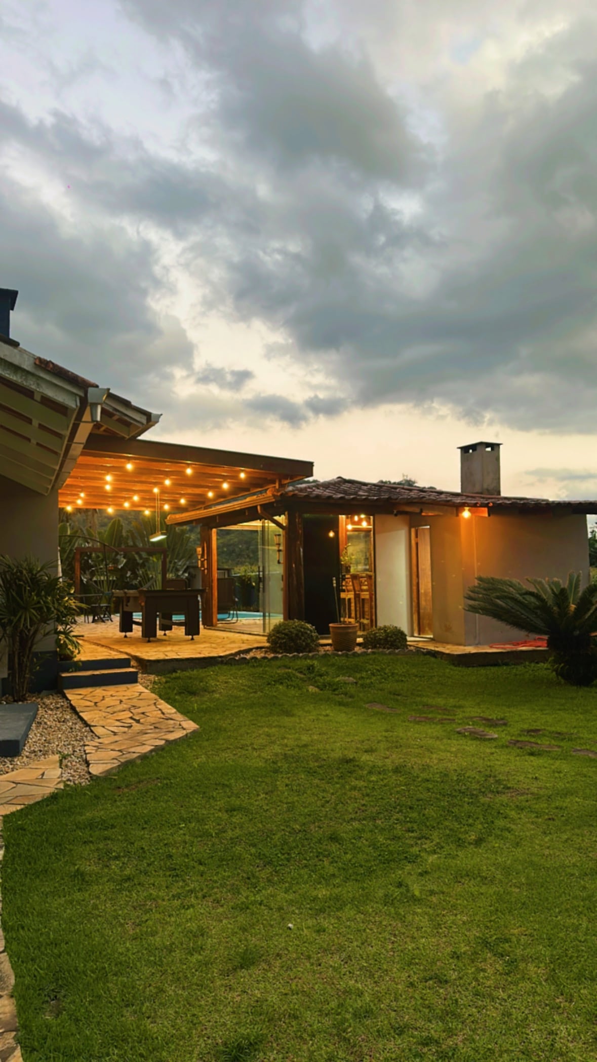 A 15 min de Joinville, casa de campo para famílias e grupos de até 8 pessoas. Jardim amplo, piscina com cascata, lago para pesca, sauna, churrasqueira com forno a lenha e projetor — tudo no mesmo espaço. Três quartos climatizados (1 suíte king), cozinha equipada e roupa de cama de qualidade. À noite, o terreno tem iluminação especial, céu aberto e vagalumes. Próximo a cachoeiras e paraísos naturais de SC. A 2h de Curitiba e 30 min do aeroporto de Joinville. Ideal para descanso o ano todo.