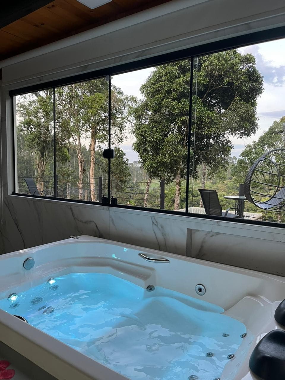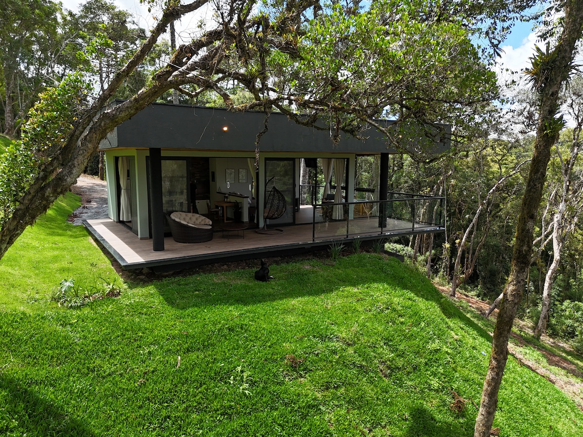 Refúgio de alto padrão na Estrada Bonita, Joinville/SC. Casa moderna com lareira, jacuzzi, área gourmet e vista para o lago. Cozinha completa, cervejeira, adega, churrasqueiras interna e externa, quadra de areia e mini-bosque. Acomoda até 6 pessoas com conforto. Para grupos acima de 6 hóspedes, o chalé anexo é disponibilizado, um espaço independente com varanda e churrasqueira privativa, garantindo ainda mais comodidade e privacidade. Próxima a cachoeiras, restaurantes e cafés da região.