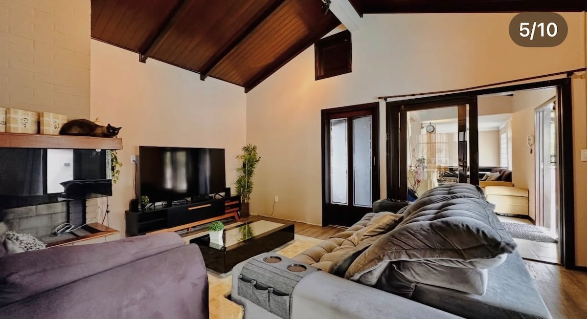 A 15 min de Joinville, casa de campo para famílias e grupos de até 8 pessoas. Jardim amplo, piscina com cascata, lago para pesca, sauna, churrasqueira com forno a lenha e projetor — tudo no mesmo espaço. Três quartos climatizados (1 suíte king), cozinha equipada e roupa de cama de qualidade. À noite, o terreno tem iluminação especial, céu aberto e vagalumes. Próximo a cachoeiras e paraísos naturais de SC. A 2h de Curitiba e 30 min do aeroporto de Joinville. Ideal para descanso o ano todo.