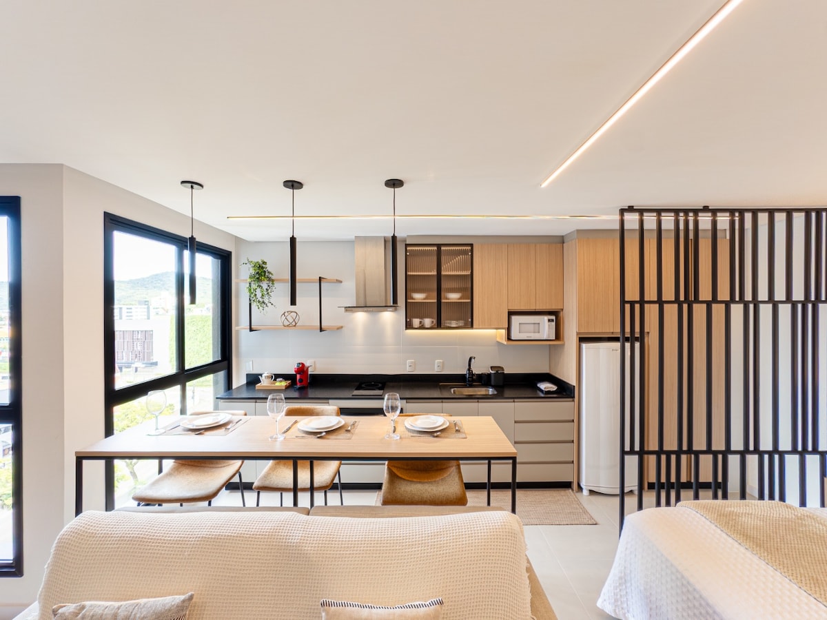 Apartamento novo e moderno, com piscina, Wi-Fi rápido e automação. Móveis planejados, iluminação em LED aconchegante, cama queen confortável, sofá-cama e espaço de trabalho. Cozinha equipada com Nespresso e fogão de indução, ar-condicionado inverter e banho potente com água quente. Conforto, tecnologia e charme em um só lugar.