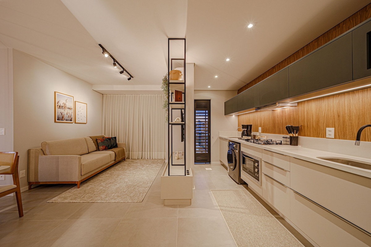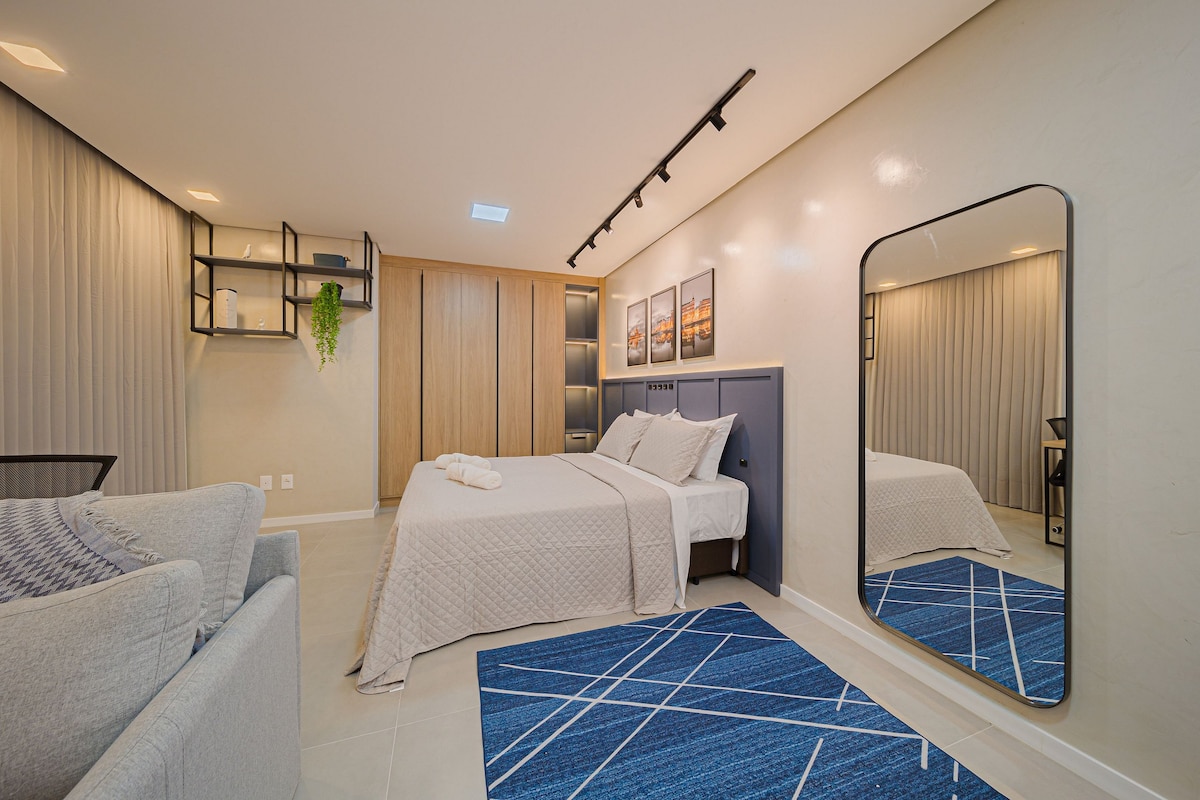 Loft aconchegante e estiloso, com marcenaria planejada, localizado em uma das melhores regiões da cidade. Próximo ao Centreventos, Teatro Bolshoi, padarias, bares, restaurantes, farmácias, comércios e parques. O LOCAL: Edifício automatizado e seguro, áreas comuns planejadas, inclui academia, piscina (não aquecida), lavanderia compartilhada OMO e mercado. Prezo pelo cuidado em cada detalhe da sua experiência, com higienização adequada, orientações claras, respeito e atenção a cada hóspede.