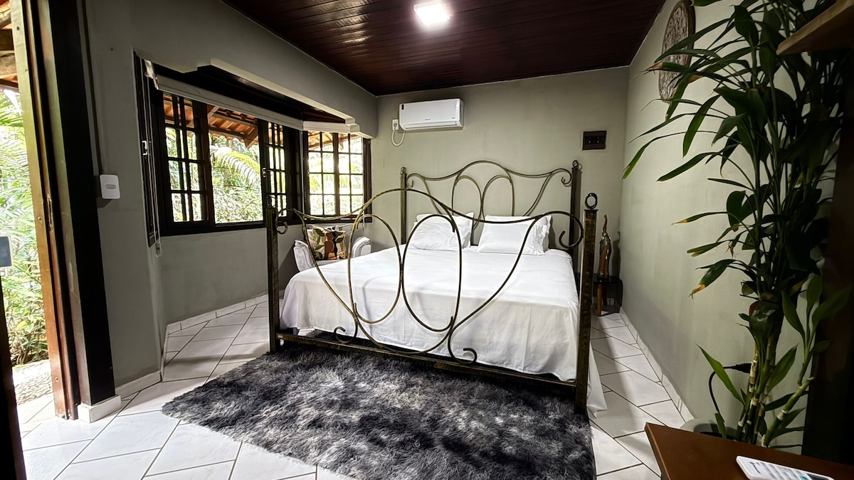 A 15 min de Joinville, casa de campo para famílias e grupos de até 8 pessoas. Jardim amplo, piscina com cascata, lago para pesca, sauna, churrasqueira com forno a lenha e projetor — tudo no mesmo espaço. Três quartos climatizados (1 suíte king), cozinha equipada e roupa de cama de qualidade. À noite, o terreno tem iluminação especial, céu aberto e vagalumes. Próximo a cachoeiras e paraísos naturais de SC. A 2h de Curitiba e 30 min do aeroporto de Joinville. Ideal para descanso o ano todo.