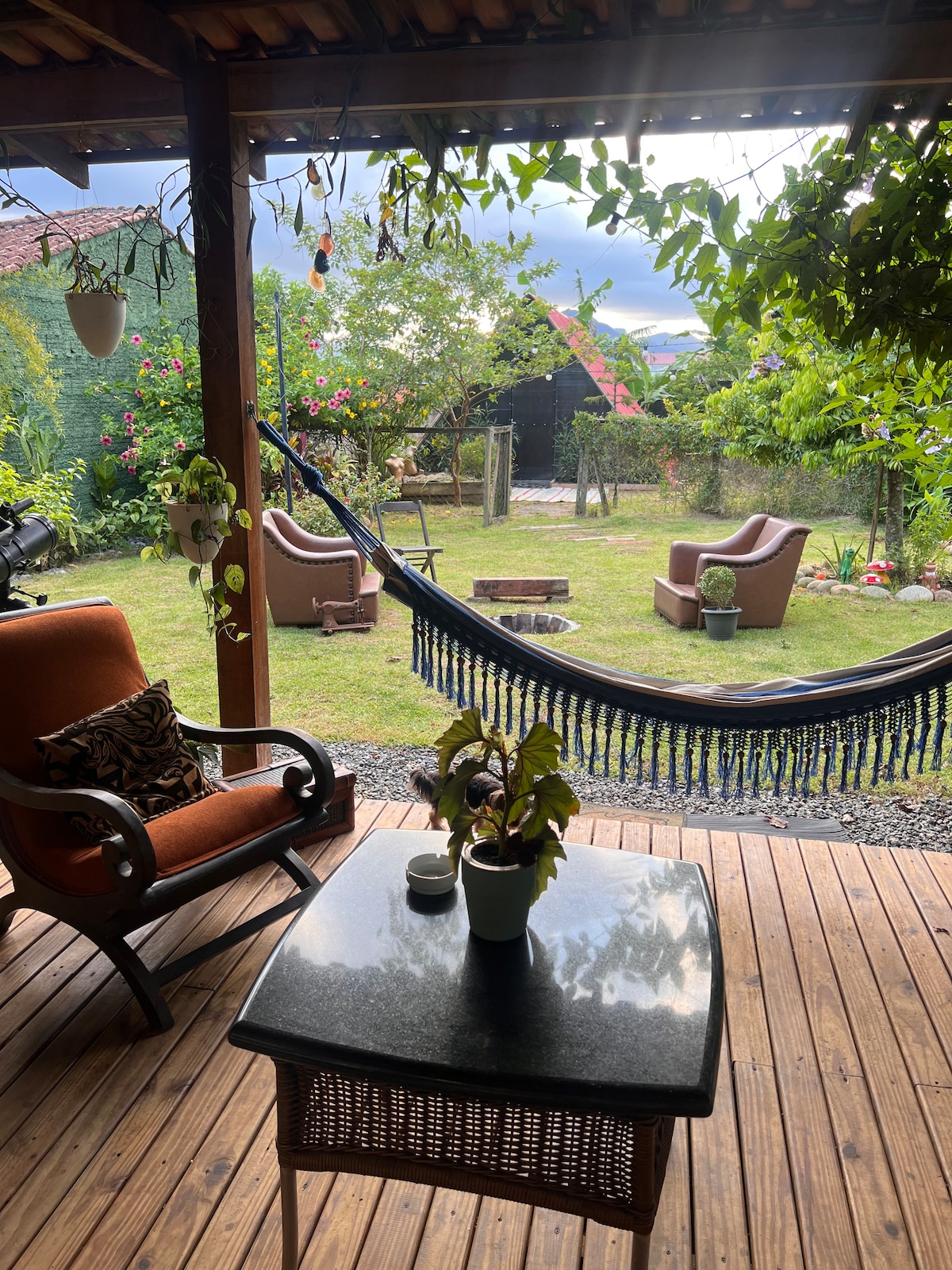 "Studio estiloso em meio à natureza, perfeito para trabalhar ou relaxar. Com uma vista deslumbrante do pôr do sol e da serra Dona Francisca, oferece todas as comodidades que você precisa, com silêncio, canto de pássaros e ar puro. Próxima do centro, cercada de verde, em uma rua tranquila. A decoração combina charme e aconchego, criando um espaço acolhedor e inspirador para momentos inesquecíveis. Há uma escada para chegar no studio (foto no anúncio).
