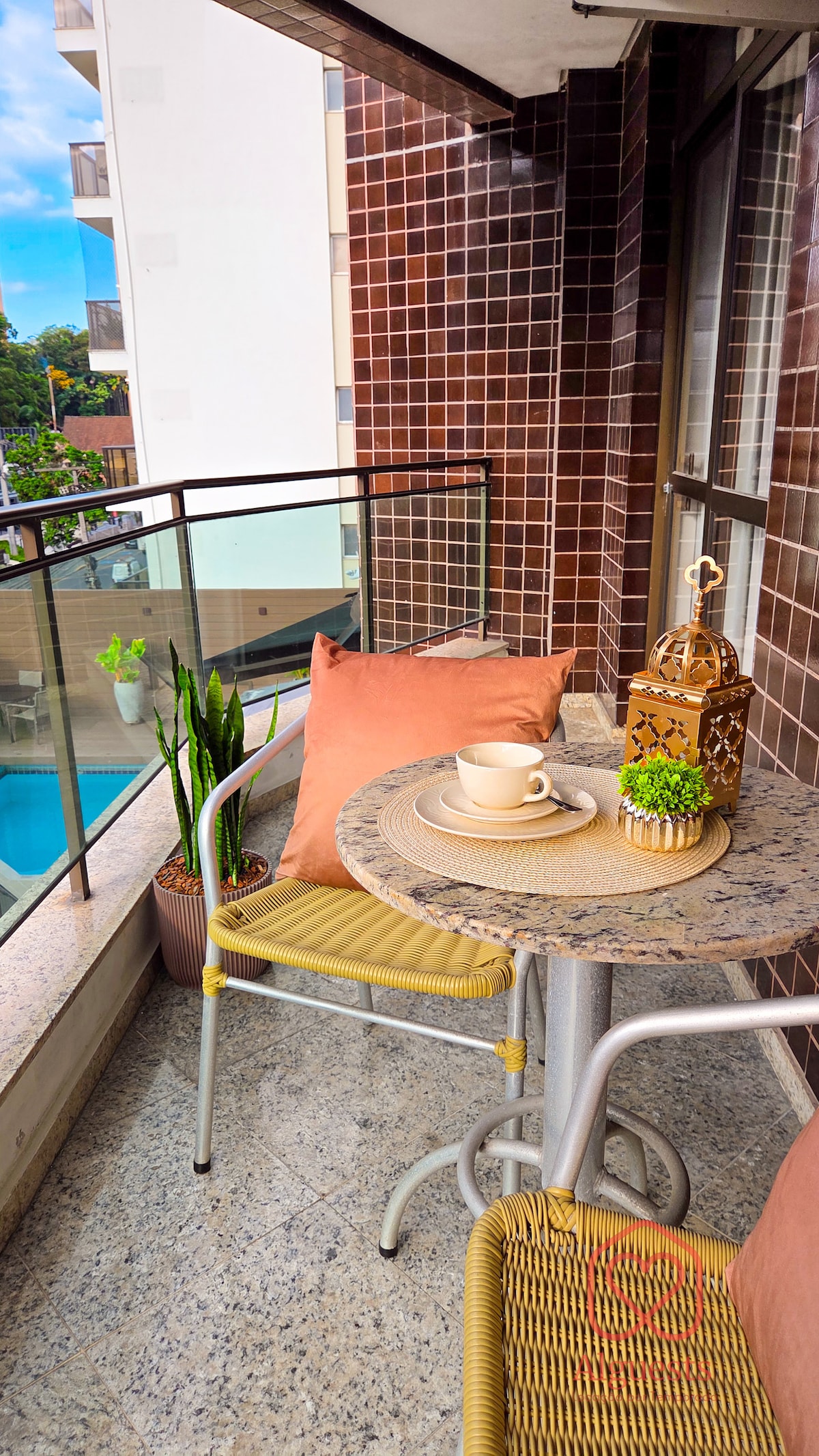 O apartamento é no segundo andar (então é necessário subir as escadas) e conta com a área aconchegante da sacada para você e sua família. Possui quarto de casal com cama box Queen, banheiro com chuveiro pressurizado, sala e cozinha conjugada com TV 50”, todos os utensílios, eletros premium, fogão com forno, geladeira, microondas, máquina de lavar, varal, tanque e ferro de passar. Além disso, fornecemos todo o enxoval necessário para a sua estadia! Vamos surpreender você positivamente!