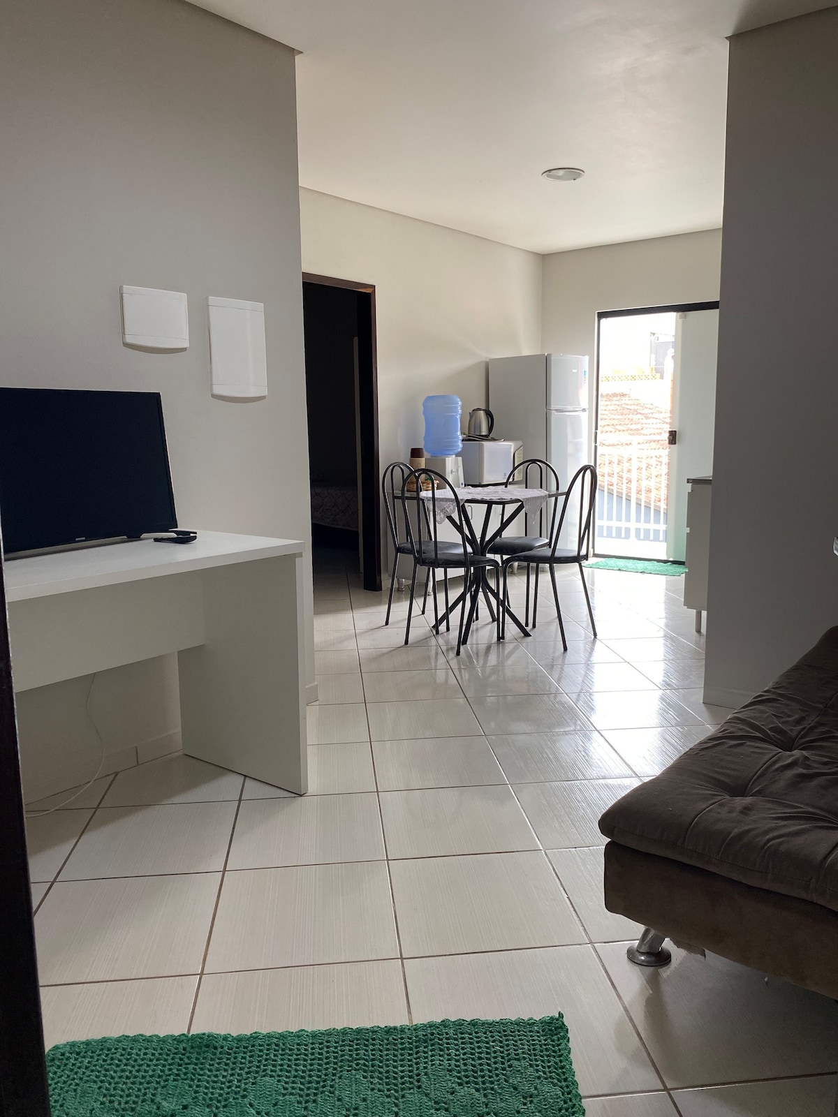 Um lugar tranquilo onde vocês poderão descansar com sua família Um quarto com 2 camas sendo uma de casal e 1 de solteiro Com enxoval completo Travesseiros roupa de cama cheirosas travesseiros cobertas Banheiro completo Toalhas de banho e rosto. Cozinha tem Air fry Microondas Jarra elétrica Sanduicheria Geladeira fogão e pia