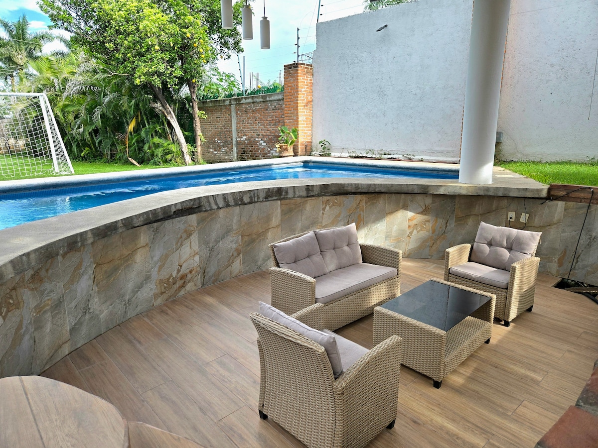 Toda la casa y su alberca privada con climatización opcional y cargo extra, son solo para ti y tus invitados, las 3 recámaras tienen baño completo y ventiladore de techo, los caninos son bienvenidos con costo, Aurrera a 5 minutos en auto y muy cerca tienditas y pizzerías, la casa cuenta con Todo, ademas muy cerca Él Rollo, el tecnológico, el estadio de futbol Coruco Diaz, Tequesquitengo, Jardines de México y la pista de Parachute entre muchas cosas más y a solo 15 min en auto de Villa Serena.