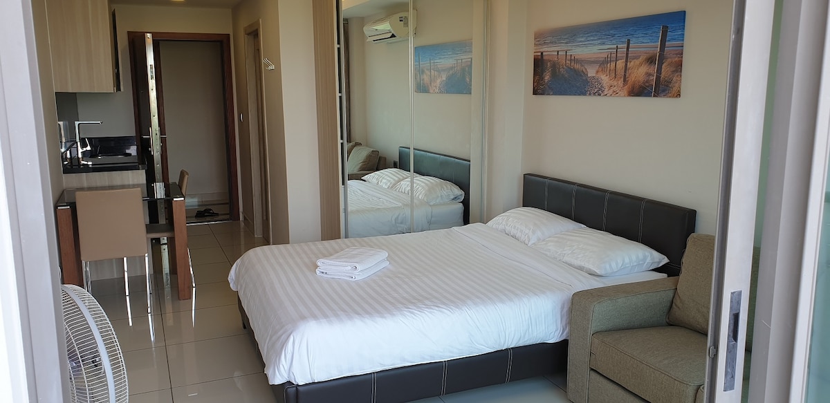 "It was very clean & exactly as advertised. Host is very responsive. Furnitures are new & the sunset ocean views are wonderful!" - Hamlet ☆ Airbnb Superhost ❤ Stunning Sea view & Island View ❤ Stylish studio ❤ 55" Smart TV ❤ Fast internet ❤ High quality furnitures ❤ Car park ❤ Quiet & Relaxing ❤ Sea breeze everyday ☆ Mini mart ☆ Dongtan Beach (1 min. walk) ☆ Bus station to Bangkok & Airport (15 min. walk) ☆ Super Town Jomtien (2 min. walk) ☆ Walking Street & Bali Hai Pier (10 min drive)