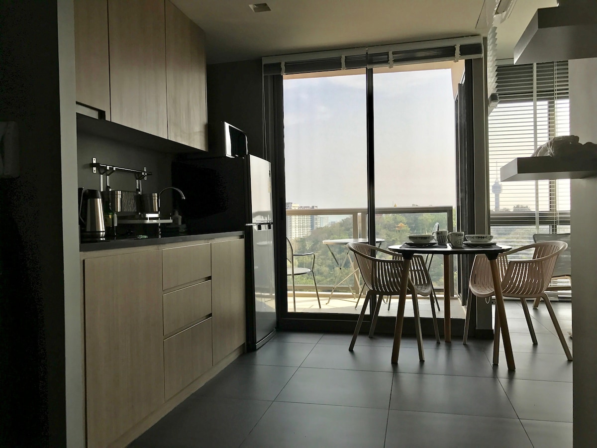 舒适的高层公寓,带阳台景观,可观赏城市景观