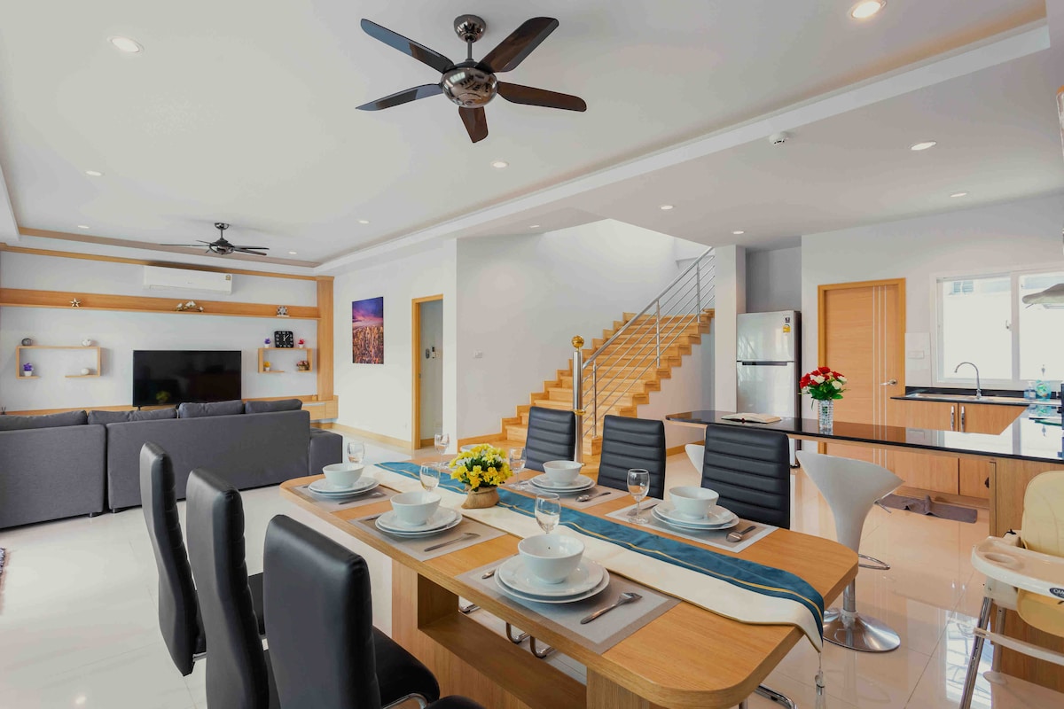 Welcome to your luxury private pool villa in Pattaya, the perfect escape for families, friends and groups looking for space, comfort and unforgettable memories. Wake up to sunshine by your own pool, enjoy a BBQ dinner under the stars, or take a short ride to the beach for sunset views — all from this beautifully designed tropical retreat. Located close to walking street and beach, shopping, restaurants and nightlife, yet in a quiet and peaceful neighborhood — you get the best of both worlds.