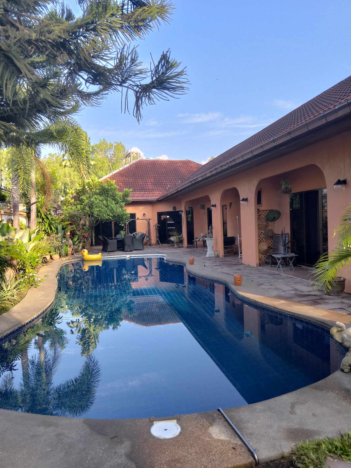 🌴 A Private Pool Villa in the City Center 🌴 Fully renovated in November 2025 with carefully selected new furnishings, this two-story private pool villa offers both excellent city access and complete privacy. Optional services available for an additional fee: Breakfast service, in-villa massage, and traditional whole-pig Thai BBQ. Located less than 5 minutes by car from Jomtien Beach and within 10 minutes from Pratumnak Hill and Walking Street, our villa offers both convenience and comfort.