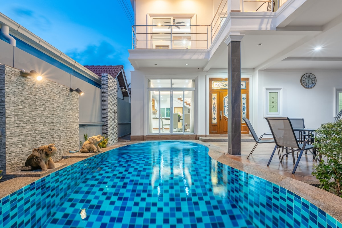 在这座位于市中心4 卧5 卫的私人泳池别墅的房源里, 会让您享受时尚温馨的住宿体验。 周边7-11/Mini BigC超市,餐馆、咖啡店林立,步行3-5分钟即到,生活超级便利, 在此可尝遍泰式美食。 开车10分钟左右直达芭堤雅风月步行街, 海滨路及沙滩;前往中央商场及terminal 21商场非常便利,住在这里,将会给您带来愉快的旅行体验!通过Grab应用程序(Bolt )√轻松搭乘出租车 设施和便利设施: -私人游泳池 -烧烤炉 -全功能厨房 -免费水、电、高速无线网络 -毛巾浴巾 -洗漱用品(洗手液和洗发水、沐浴露) -每个房间都有吹风机 -每个房间都有smart TV - 保险柜 -电熨斗 -洗衣机 客厅有75英寸4K超高清智能电视 -私人停车位 免费饮用水、咖啡、茶 免费日常清洁、每2 天更换一次毛巾浴巾 我保证提供绝对私密的住宿体验。无需与他人共用,无任何干扰。