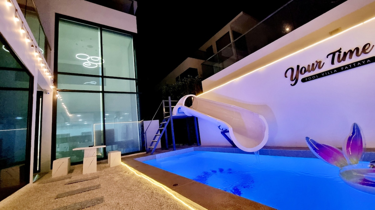 Escape and retreat 2-bedroom private pool villa (1 room locked, shared by owner), ideal for a relaxing or playful stay. • Private pool & Garden • Game room with racing sim + 120” cinema TV • Full kitchen for home-cooked meals • BBQ pit in the garden • 5 min walk to the beach • Walking distance to the Viewpoint & Buddha Temple • 5 min to Bali Hai Pier • 2 min walk to 7-11 • 5 min by taxi to Walking Street • Surrounded by local restaurants, cafes, and bars • Pet-friendly Perfect for your Vacation
