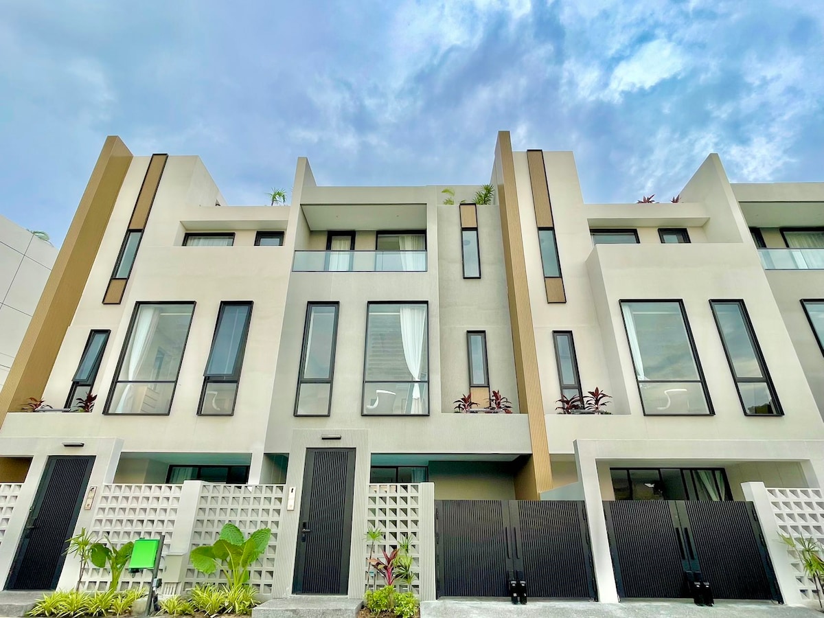 澜叙·Wavytalk 澜叙 联排别墅 | 3卧 4卫 | 距离海边仅300米 🏝 海边度假体验 只需步行5分钟即可抵达沙滩。晨间散步、傍晚看海上日落,浪漫氛围扑面而来。 高级现代设计 三层联排别墅,以温润木色与纯白空间打造简约却精致的格调。落地窗让自然光洒满房间,每一处角落都像是杂志里的度假大片。 🛏 舒适居住空间 • 3间独立卧室,配备柔软大床与高品质床品 • 4间现代化卫浴,冷热水自由切换,保证私密与便利 • 明亮宽敞的客厅,直通露台 • 开放式餐厨区,配备咖啡机、微波炉等厨具,轻松满足日常与聚会需求 阳光露台 & 温馨庭院 在三楼露台或一楼小院坐下喝一杯、聊一聊,或者享受庭院的静谧氛围。白天阳光充足,夜晚灯光温柔浪漫。 周边生活便利 • 步行可达餐厅、超市、7-11、Tops • 距离芭提雅地标【真理寺】【步行街】车程仅几分钟 出行吃喝玩乐都非常方便,既能体验地道生活,也能探索人文景点。 理想选择 家庭度假 | 情侣旅行 | 朋友聚会 芭提雅 · 澜叙·Wavytalk