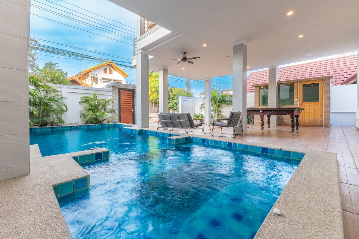 芭提雅步行街附近独栋4卧5卫带桑拿房的泳池别墅S2(可提供漂浮早餐和烧烤服务需另付费)