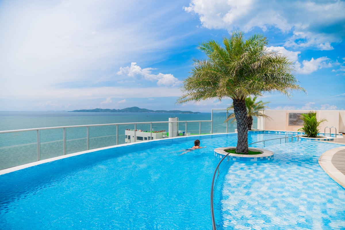 芭提雅瞰海・无边泳景泳池健身房公寓/直达海滩椰子树旁