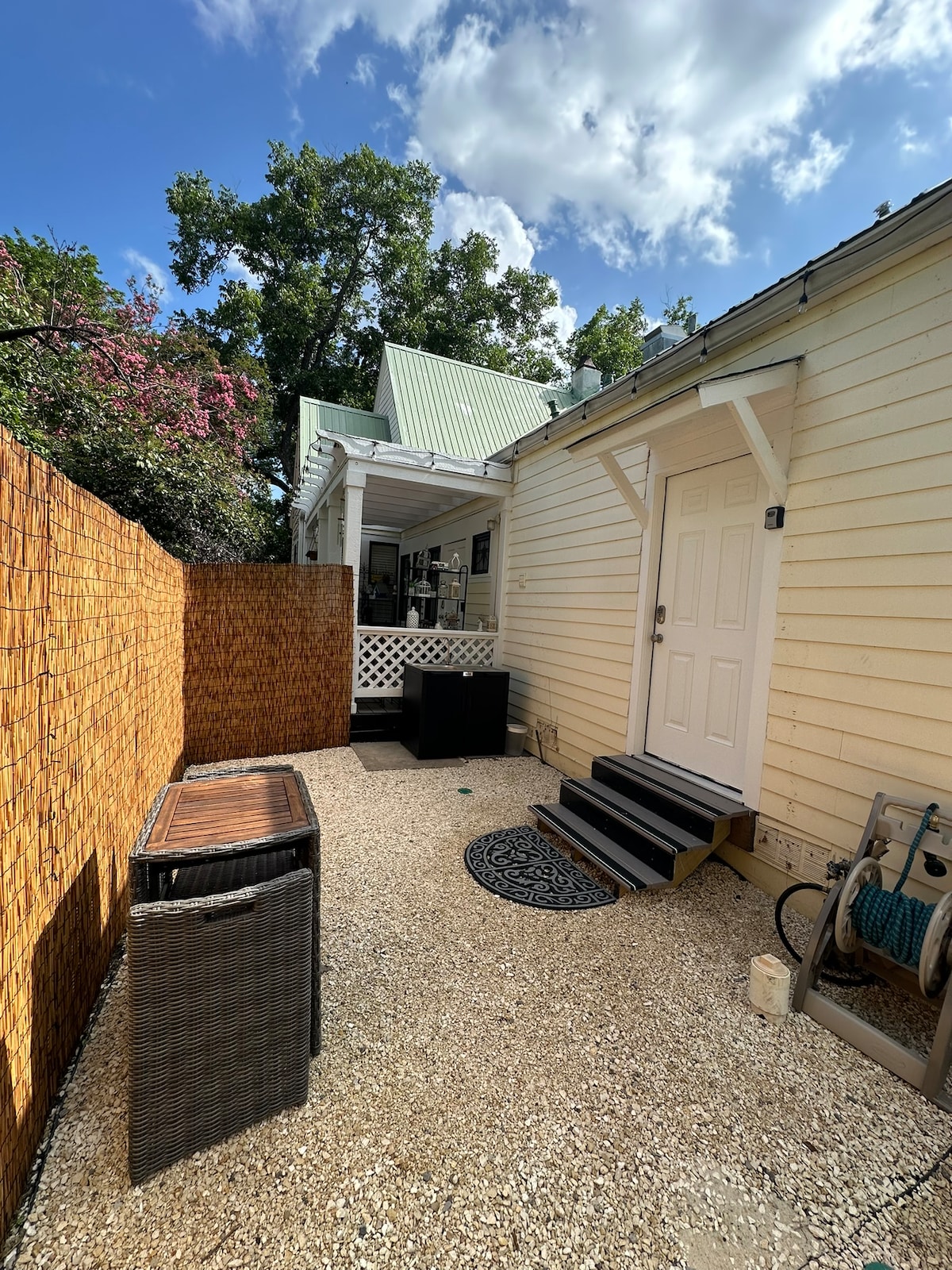 Stay in this charming guest suite and live like a true local in Hutto, Texas. Our rental comes with a completely private entrance, bed and bathroom, kitchen, and living room. Wi-Fi, laptop-friendly workspace, a TV -- we've got everything you need. Join the country-fun and visit the shared cottage garden, tranquil goldfish pond, take in the beautiful views, and kick back and relax...welcome to paradise.