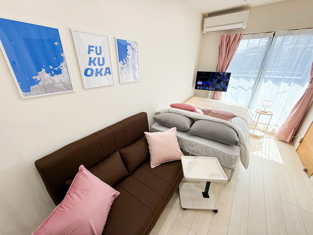 博多駅徒歩 9分(34㎡)!5G WiFi!福岡の中心地(博多・阪急・天神)駐車場有り