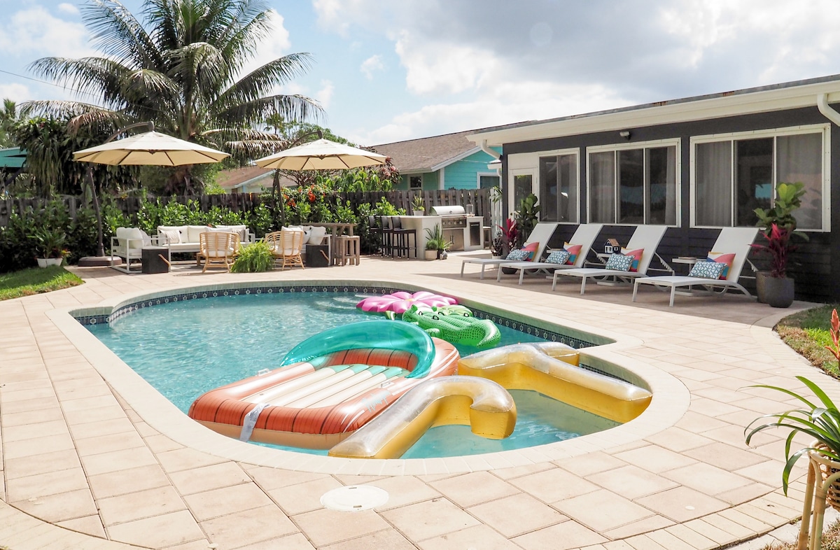 **3/2 Heated pool home, peaceful private backyard in the heart of Jupiter! Close to Pelican Club, restaurants, golf, and coffee. Beautifully furnished with a mid century modern theme, this feels like vacation. Plenty of room for you & your guests to relax on the sun deck, lounge in the sun, cool off in the pool, and savor peace and quiet. Grill out and enjoy a calming sunset outdoor dinner. Read a book, enjoy a cocktail, or take a long nap. So much value, you'll never want to leave!