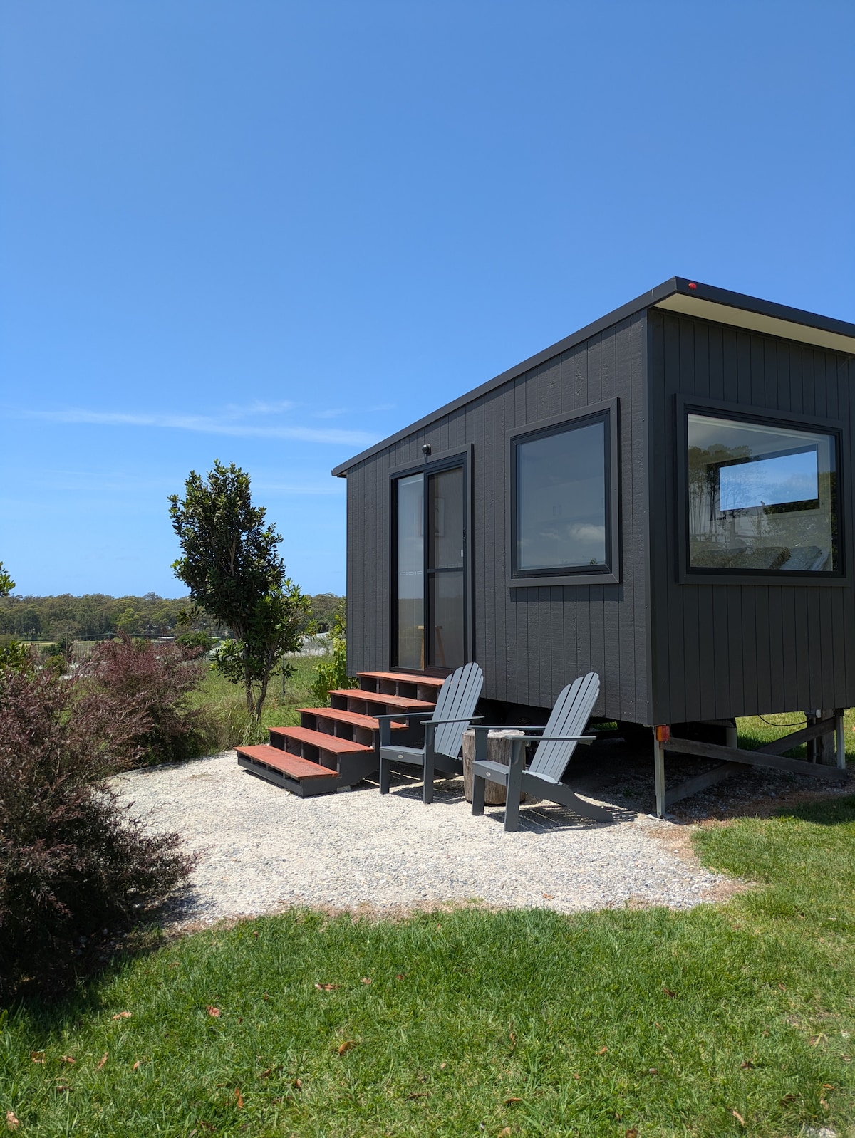 Located creekside in a rainforest our Escape Pod (tiny house) is in one of the most beautiful locations the region has to offer. You will feel your worries ebb away while you listen to the natural surrounds, or your fave tunes. What you get up to during the day is totally up to you, go hiking, explore the local beaches, shops, cafés and eateries or simply sit by the fire with a good book and be alone with your thoughts! Your off-grid venture awaits – This is not your normal hotel stay!!