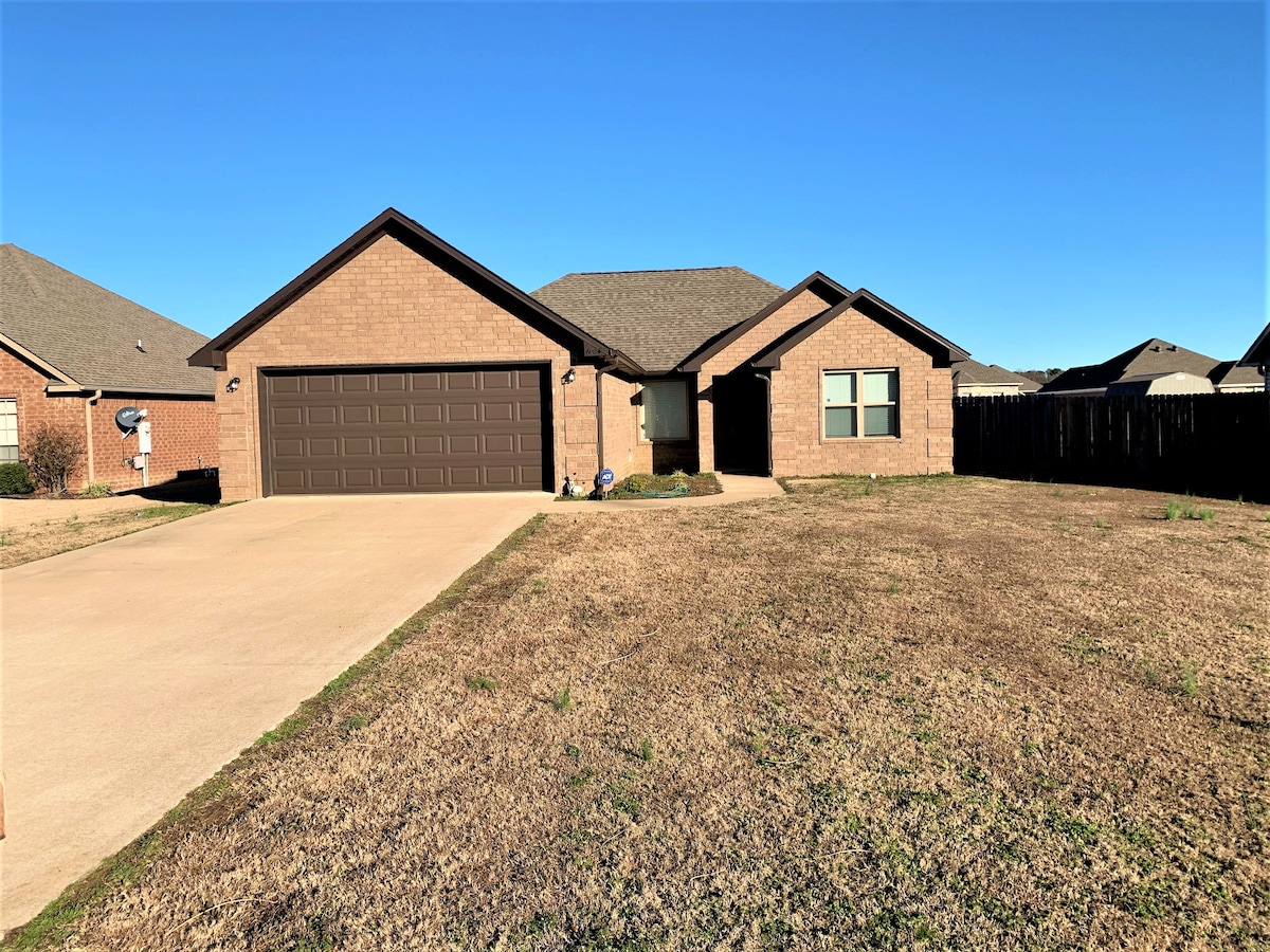House on 7.22 acres, with woods out back and big front yard. We are midway between Jonesboro and Paragould, 10 min to NEA Baptist hospital, ASU, shops and dining. 5 min to Lake Frierson, 10 min to Lake Walcott. See pics for fish caught in these lakes. Entire house with 3 BR, 2.5 Bath, Den, LR, DR, Kitchen and Mudroom. There is a TV in Master bedroom and LR, wi-fi fiber optic internet 116mb/sec, and a deck w grill. Fire pit out back. Hike, bike, explore.