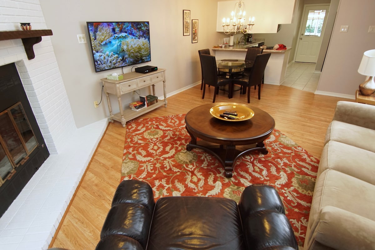 Beautifully decorated, 3-bedroom/2 bath home around ( over 1500 sq sf )with lots of space perfect to make your home away from home. Enjoy this beautifully appointed home on your next vacation or business trip. You will enjoy this spacious home with the main bedroom and bathroom downstairs, two bedrooms and a bathroom upstairs, cozy living room with fireplace and all the comforts of home.