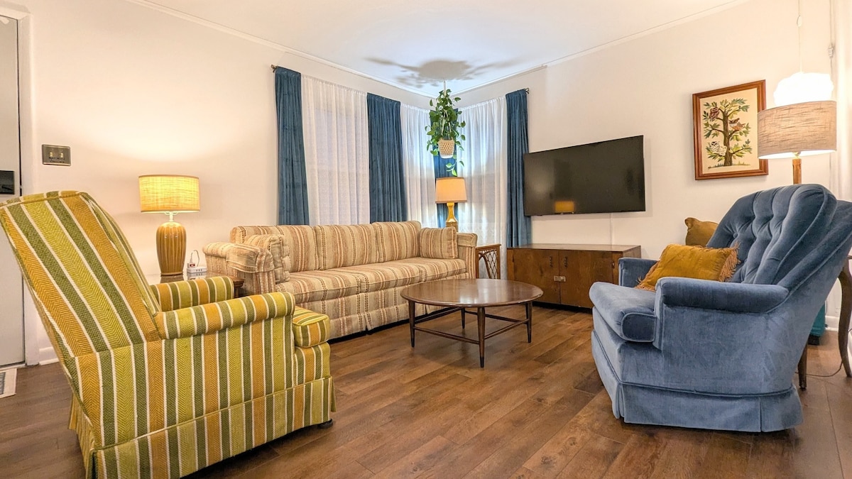 Welcome to @The209byRUE—our professionally designed downtown loft located on Main Street! At a full 1200 square feet, you'll enjoy the regular luxuries of a full-size home without sacrificing an incredible downtown location by being directly on Main St. near Jonesboro’s finest locations. Explore Downtown Jonesboro’s vibrant streets and good eats with this 2 Bed, 1 Bath loft as your base. The property is tastefully decorated with colorful artwork and luxury finishes throughout.