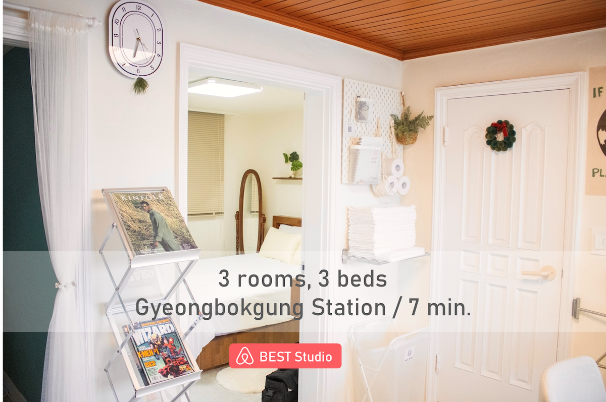 韩屋#景福宫站#1楼#平地/明洞/仁萨洞/光化门/首尔站#12人/大家庭#4间客房2个卫生间/酒店级床上用品