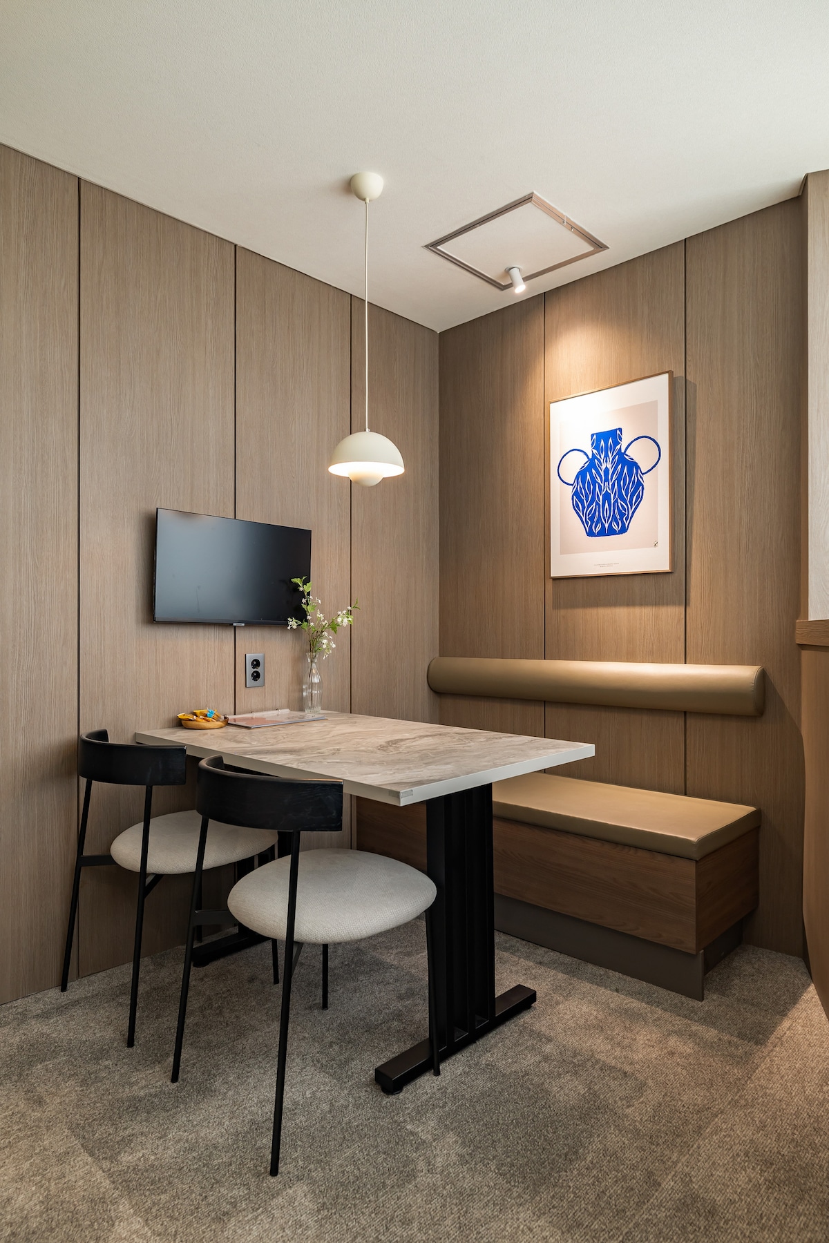 酒店级/埃尔贝O/东大门站30秒/4人房/独立卫生间/4人桌
