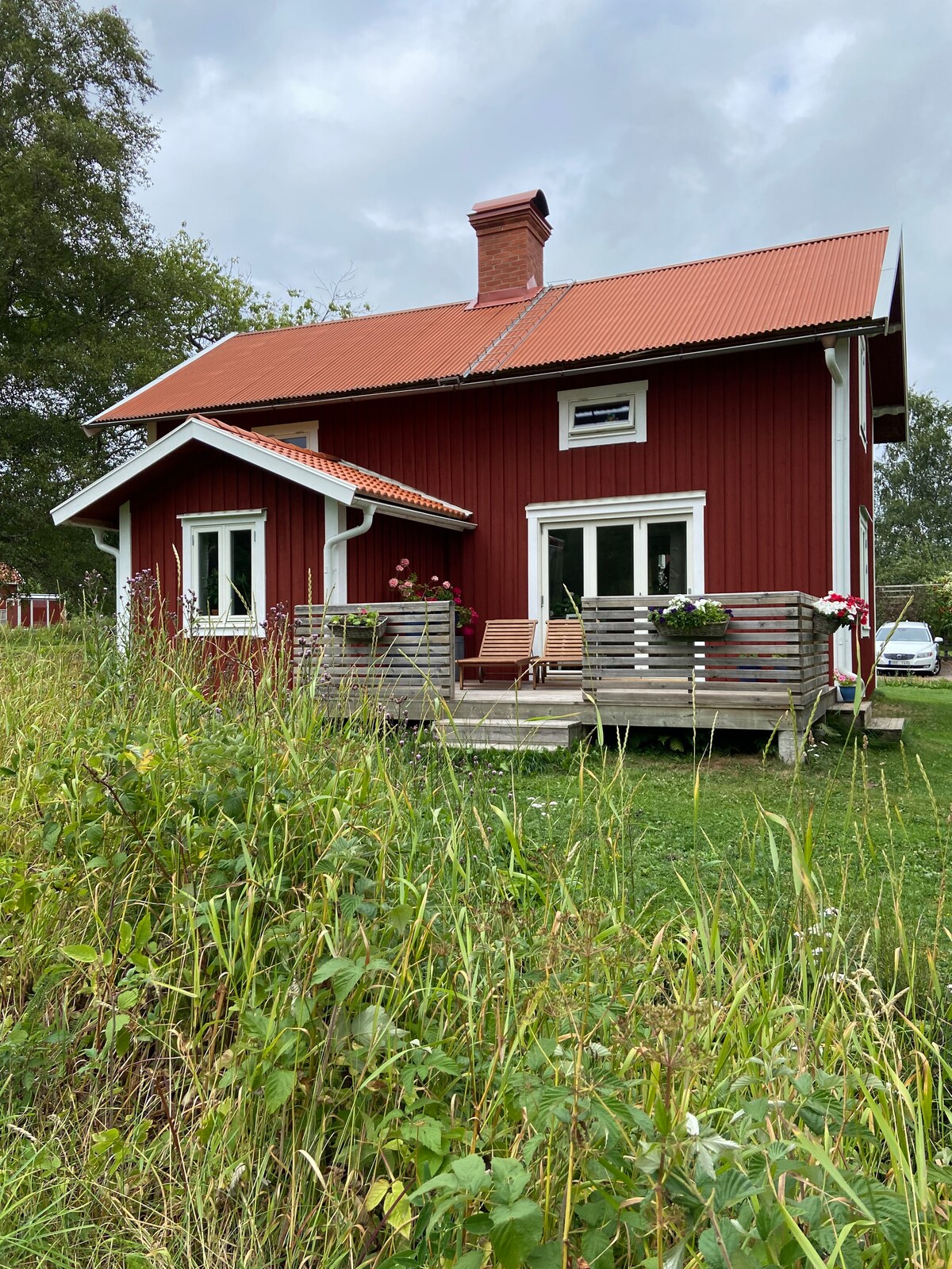 Meet our lovely red cottage in Småland surrounded by forest, hills and lakes. With all the comfort you need for a pleasant stay. Enjoy a cozy evening by the wood stove. The house has a big private garden where you can relax and make a campfire at the fire pit. Go fishing or take a swim in one of the lakes nearby. And maybe you see deer, foxes or moose from our sunny porch. Go skiing at the ski-slope, visit a moose park or go down the zippline. April-October we rent out 2 sit-on-top kayaks.