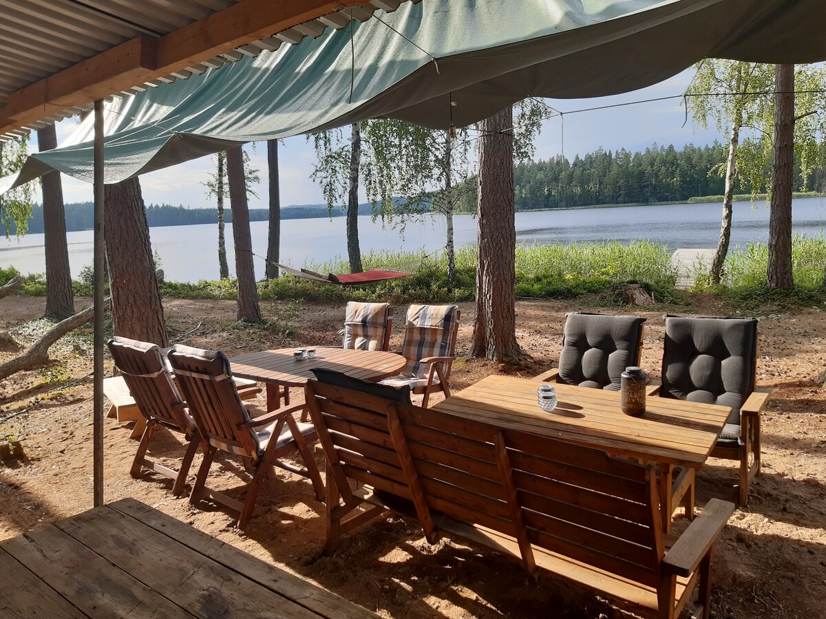 Glamping med unikt läge! Njut av tystnaden och solnedgången över vattnet. Fiska från bryggan eller ta båten till en öde ö. Upptäck den omväxlande naturen som efter säsong erbjuder både lingon och blåbär. Avsluta dagen runt lägerelden medan solen går ner över sjön. En upplevelse utöver det vanliga!