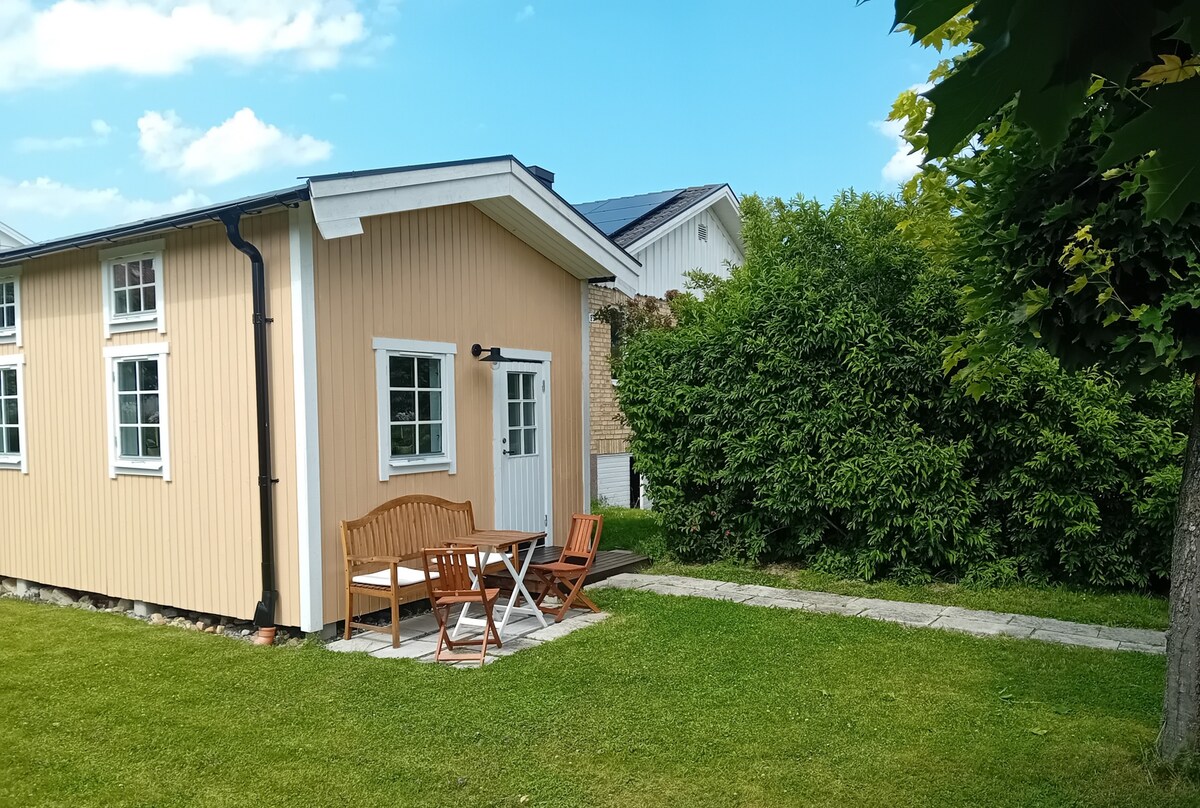 Bekväm gäststuga direkt vid Anebysjöns strand. Öppen planlösning med 2 bäddar med möjlighet för ytterligare 2 bäddar i bäddsoffa. Fullt utrustat kök, toalett, sittgrupp med TV i uterum, uteplats. Dusch, tvättbänk, tvättmaskin och torktumlare finns vägg i vägg. Lakan, handdukar och badlakan ingår. Egen parkering, laddstation för elbil finns.