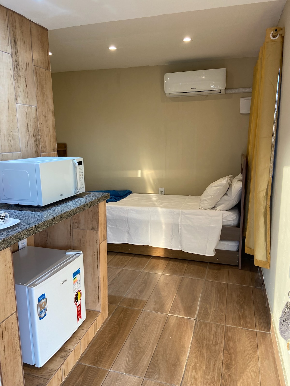 Lindo Loft PÉ NA AREIA. Localizado no condomínio Pier 51 em Mangaratiba. Uma suíte para casal com ar condicionado potente, sala com sofá-cama para duas pessoas. Cozinha bem equipada com fogão a gás 4 bocas com forno. geladeira duplex, microondas, forninho elétrico, sanduicheira , filtro elétrico Everest carvão ativado, cafeteiras, liquidificador, panela de pressão e todos os utensílios necessários em uma cozinha. Estacionamento dentro da propriedade em frente ao loft. Piscina privativa.