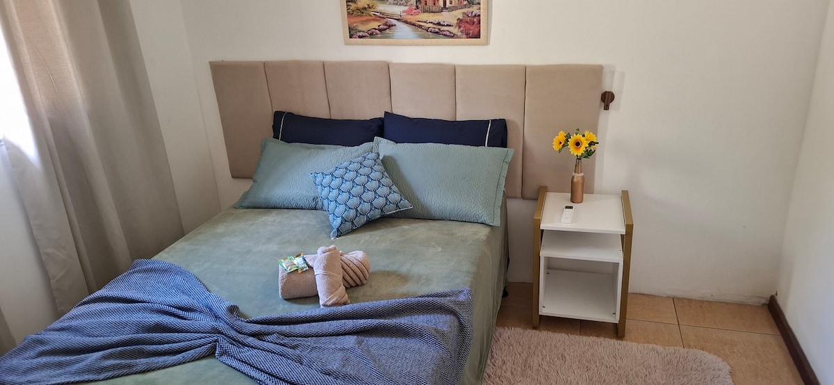 Casa confortável e aconchegante, situada em um sítio com natureza exuberante, a 15 minutos das melhores praias do Rio e 10 minutos do Recreio. Lindo jardim com piscina e sauna a vapor. Espaço para corrida e caminhada. Quarto com cama queen muito confortável, lençóis e toalhas de alta qualidade, ar split, cozinha gourmet, cooktop, forninho elétrico, microondas, geladeira, freezer, churrasqueira portátil, máquina de café Nespresso, sala espaçosa com sofá-cama, chaise, smart TV, SKY e varanda.