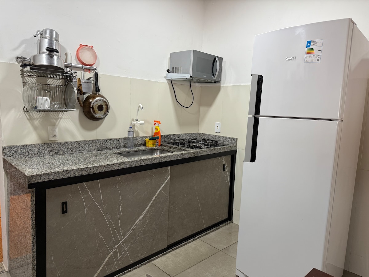 Exclusive retreat in Barra de Guaratiba! Enjoy a private hot tub, stunning views, hammock, and eco-friendly fireplace in your own outdoor area. Renovated studio with king-size bed, Smart TV, full kitchen, and washing machine. Independent entrance, 2 parking spaces, and 24/7 security in a gated community. Perfect for couples, solo travelers, and anyone seeking comfort, privacy, and charm in one of Rio’s most beautiful spots.