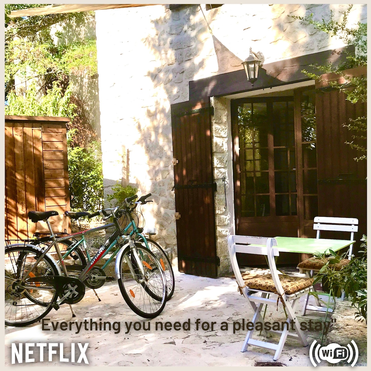 "La Maison aux Oliviers" est un petit mas de charme de 90m2, climatisé, indépendant et situé sur une ancienne oliveraie, au calme dans un jardin paysager offrant une belle piscine privative chauffée et sécurisée. Son large auvent offre la possibilité de vivre à l'extérieur à l'abri du soleil et du vent (mistral). Proche du centre historique, du marché local et des commerces (à pied), elle est parfaitement équipée pour le télétravail (Fibre haut débit)
