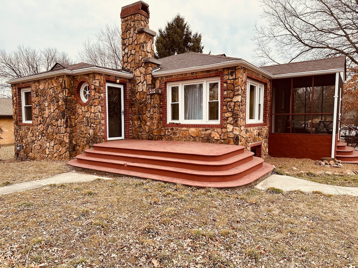 Welcome to Red Roof Creekside Getaway. Escape to this enchanting bungalow in Joplin. This cozy retreat features a fully furnished private Guesthouse with all the essentials for a comfortable stay. Our wish is that everyone who stays with us will have a comfortable, relaxing, stress-free time. We're available for any questions or needs. Our guest house sits on a secluded, private, peaceful two-acre lot, surrounded by trees, a creek and lots of wildlife. Close by Route 66 and local amenities.