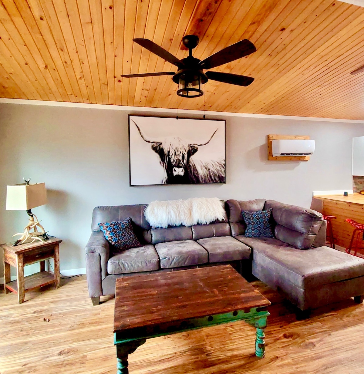 The Bunkhouse sits adjacent to a large body of water. Just 10 miles to Pittsburg and 30 miles to Joplin, MO. Guests can enjoy time outside on the covered porch next to the water, sit around the fire pit on those cool evenings, go for a hike, play a game of pickleball, or enjoy some catch and release fishing from the bank. Experience country living and sights and sounds of nature. Free range chickens also roam the property. 3 GUESTS MAX NO OUTSIDE GUESTS