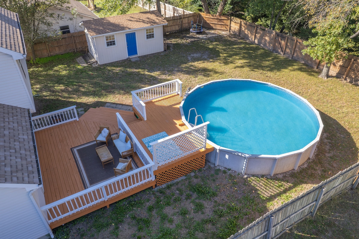 CONTACT US for special holiday pricing! Relax at this peaceful, charming 2-bedroom, 1-bath home. Which also includes an arcade/game room. It sits on a beautiful, wooded acre where deer roam freely and nature surrounds you. It’s the perfect place to relax, recharge, and enjoy a slower pace—without leaving the city behind. Grill while you unwind on the flagstone patio, then cool off in your private in-ground salt water pool. In the mornings, grab a coffee and watch deer wander through the yard.