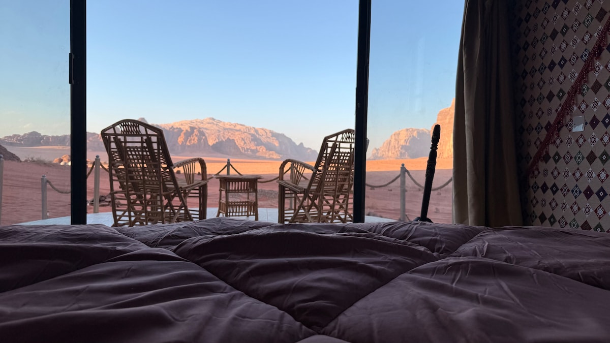 Seeking for a once-in-a-lifetime adventure? You're Welcome to sleep in the wild Wadi Rum desert, in the heart of the Wadi Rum protected area and Unesco world heritage site. From our new panoramic tent, you have stunning views to the Wadi Rum desert, allowing you to witness breathtaking sunsets right from your bed! My name is Salem Sabah, with me, you can experience the real lifestyle of the Bedouin. Breakfast included, dinner with a small additional cost. Jeep and camel tours are available!