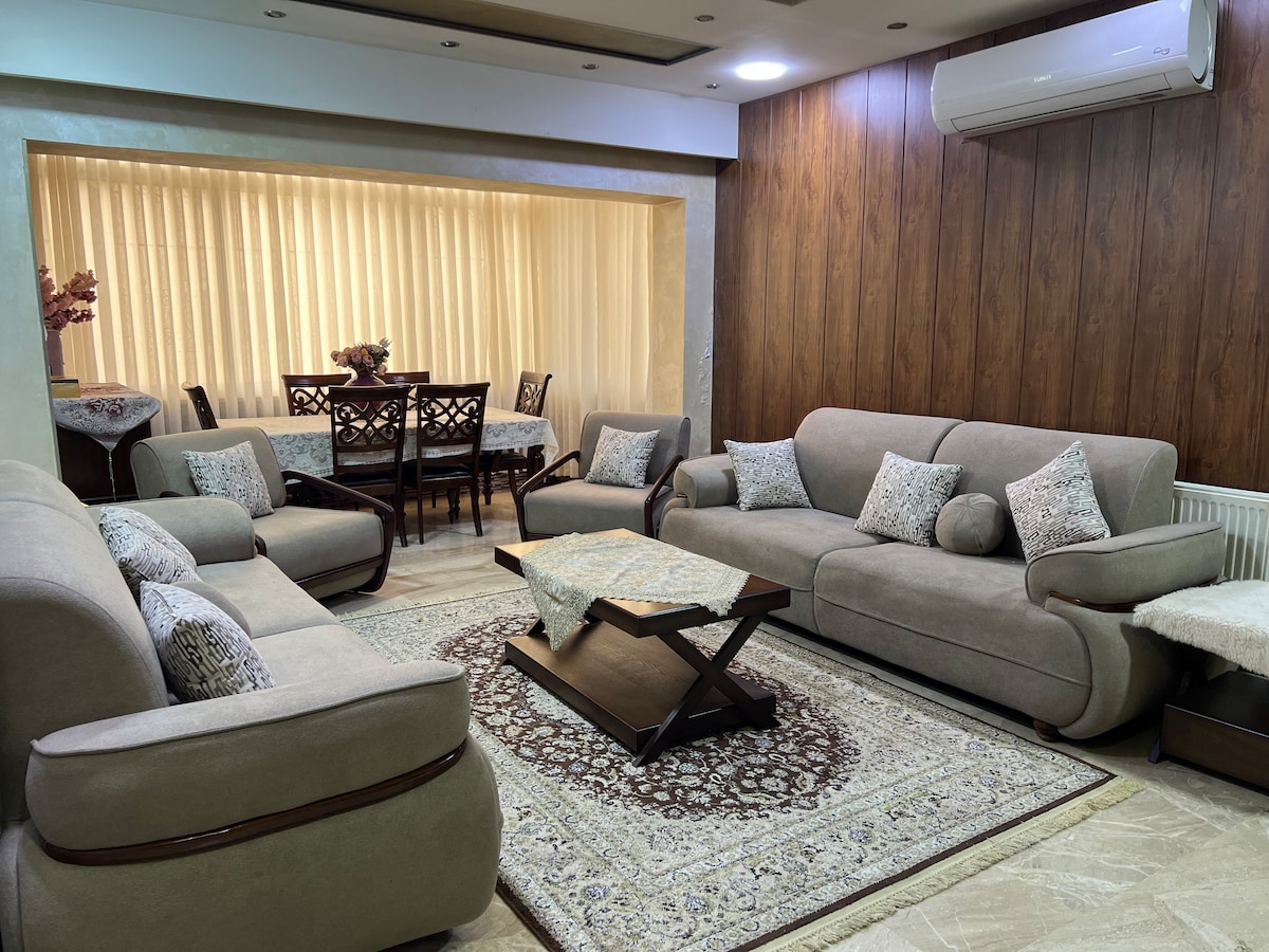Luxurious 2-Bedroom Apartment in the Heart of Amman Enjoy a premium stay in this centrally located, stylish apartment featuring: 1 spacious bedroom with a king-size bed 1 bedroom with two comfortable twin beds extra bed available upon prior request Baby crib available upon prior request Perfect for families or small groups looking for comfort, convenience, and elegance during their stay in Amman.