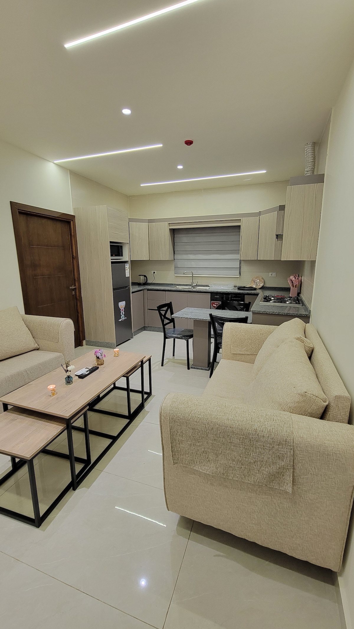 Brand new, stylish apartment 2 bedroom , full kitchen, dining area, comfy living room and cozy balcony, ideal for families seeking peace and relaxation. No parties,loud noise allowed, check-in 2 pm, check-out at 12 pm.