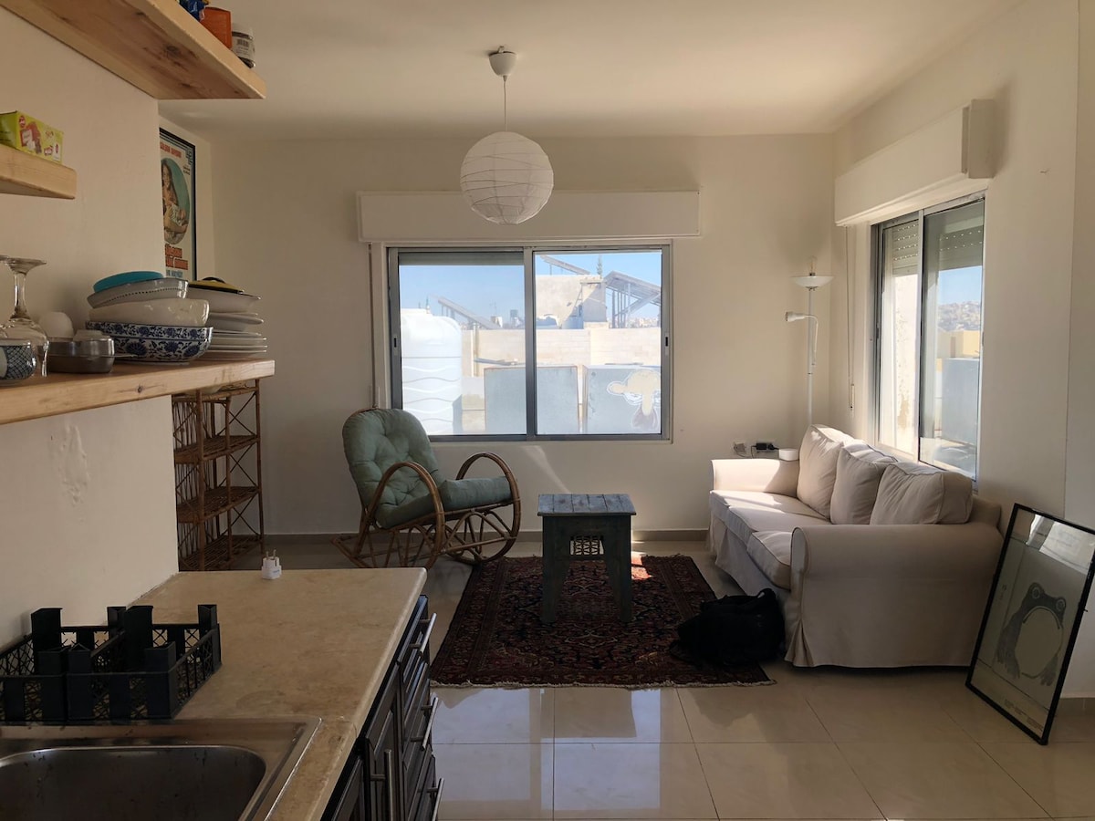 Rooftop Studio overlooking Amman with a 360 degree view. The flat has lots of windows which allows for a lot of natural light to enter the house. It is located in Jabal AL-Weibdeh next to the National Gallery of Fine Arts. There is a lovely park right in front of the house. It is a quiet, residential area, yet the vibrant central Weibdeh is only a 10 minute walk away.